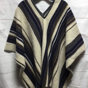 WOOL PONCHO WITH VERTICAL STRIPE PATTERN & LAMB LEATHER BINDING