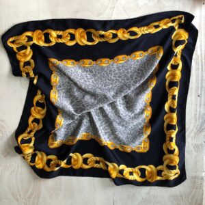SILKY SCARF LARGE CHAIN PRINT W/ ANIMAL PRINT CENTER