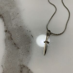 SILVER PLATED SMALL DAGGER PENDANT ON SNAKE CHAIN NECKLACE