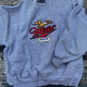 MILLER PILSNER BEER VINTAGE EMBROIDERED EAGLE GRAPHIC LONG SLEEVE WAFFLE KNIT CREWNECK SWEATSHIRT