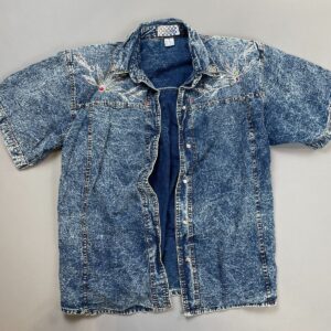 *AS-IS*UNIQUE EMBROIDERED & COLORFUL RHINESTONE APPLIQUE DESIGN LONG SLEEVE BUTTON UP BLOUSE