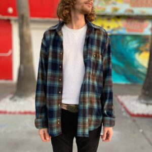 AS-IS VINTAGE PENDLETON BLUE PLAID FLANNEL WITH SUEDE ELBOW PATCHES LONG SLEEVE SHIRT