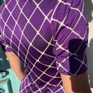 ADORABLE! 1960S SHORT SLEEVE COLLARED DRESS CRISS CROSS PRINT