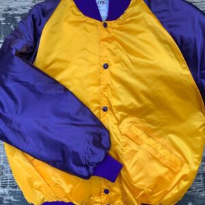 VINTAGE SATIN BUTTON UP LOS ANGELES LAKERS JACKET VARSITY LETTERING CHENILLE BACK PATCH