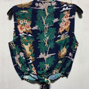 TROPICAL PALM AND HIBISCUS FLOWER WAIST-TIE BUTTON-UP TOP