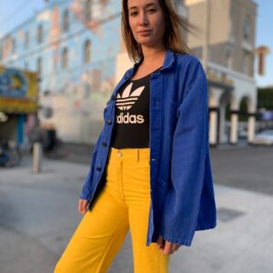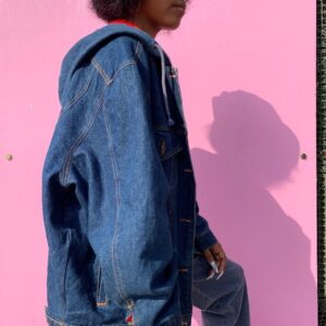 FULLY LINED HEAVY DARK WASH DENIM TRUCKER JACKET WITH HOOD AS-IS