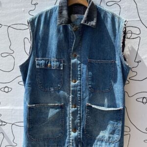 MID LENGTH COLLARED DENIM VEST WITH FLEECE LINING