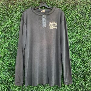 RAD FADED AND SOFT LONG SLEEVE HENLEY SHIRT BIG NOSE KATES SALOON GRAPHIC