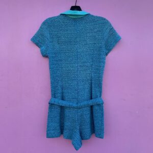 HAND DYED 1970S KNITTED COLLARED ROMPER WITH SILVER BUTTONS WITH BELT ON BACK