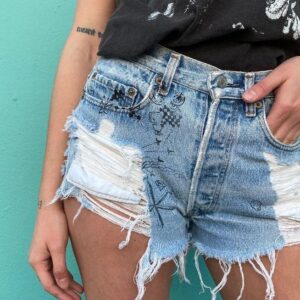 FULLY TATTERED & DISTRESSED LEVIS CUT OFF DENIM SHORTS CUSTOM STAMPING