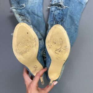 CUSTOM HAND ILLUSTRATED OVER THE KNEE DENIM PEEP TOE BOOTS