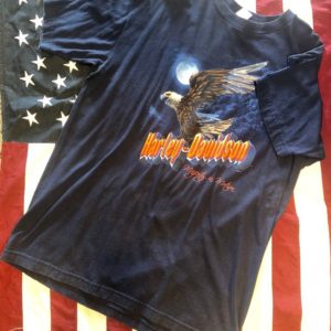 T-SHIRT HARLEY DAVIDSON W/ EAGLE LANDING ON FATBOY BIKE GRAPHIC DESIGN