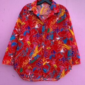 FUN 1980S WILD FRUIT PRINTED COTTON HAWAIIAN SHIRT