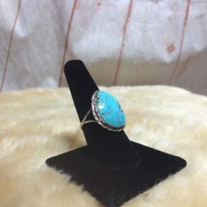 BIG TURQUOISE RING W/ BRAIDED LOOK TWISTED RIM DETAIL STERLING SILVER 925