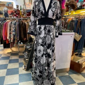 1970S FLORAL PRINT BELL SLEEVE EMPIRE WAIST MAXI DRESS