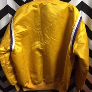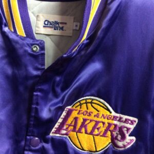 LOS ANGELES LAKERS CHALKLINE SATIN SPORTS JACKET W/LETTERS ON BACK AND TEAM LOGO FRONT LEFT CHEST