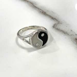 BLACK AND WHITE CLASSIC YIN YANG DUAL FORCE BALANCE CHINESE PHILOSOPHY SILVER RING