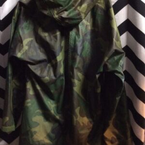 RAIN JACKET – MILITARY ISSUE – CAMO PATTERN RUBBERIZED VINYL – HOODED