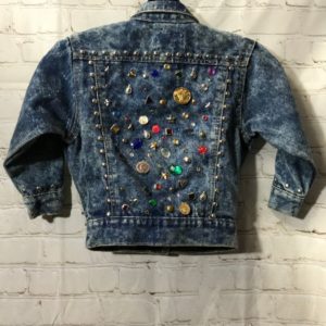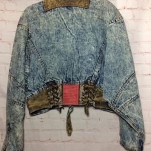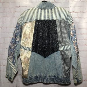 1980’S FUNKY PATTERN PATCHWORK ACID WASH DENIM ZIP-UP JACKET