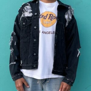 SUPER DISTRESSED FLAMING WINGED SKULL BACK PATCH DENIM JACKET