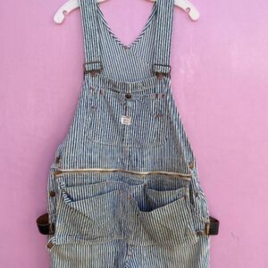 KILLER DISTRESSED DOUBLE KNEE SEARSUCKER OVERALLS W/ ZIPAWAY TOOL BAG EMBOSSED LEATHER HOLSTER AS-IS