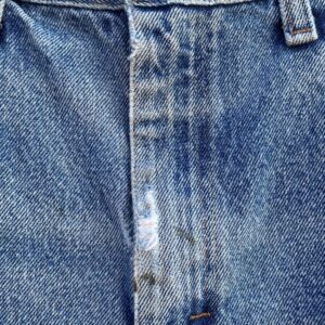 VINTAGE LEVIS CUSTOM BLUE & YELLOW PAINT ASCENTS LIGHT WASH DISTRESSED DENIM JEANS