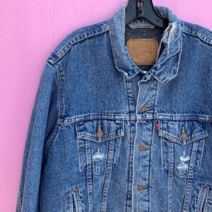 PERFECTLY DISTRESSED MEDIUM WASH LEVIS DENIM JACKET BLANKET LINED