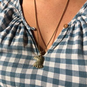 SOLID BRASS EAGLE HEAD PENDANT NECKLACE BALL CHAIN