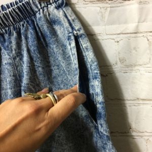 ACID WASHED DENIM ELASTIC WAIST SKIRT W/ POCKETS