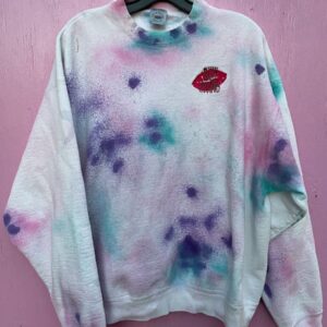 FUN PASTEL DYED CREWNECK SWEATSHIRT RUBY RED HOTS EMBROIDERY