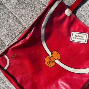 AS-IS FUN VINYL TOTE BAG INSIDE POCKETS PRINTED LINING