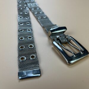 FUN 1990S Y2K NARROW STEEL MESH METAL BELT DOUBLE EYELET & PRONG BUCKLE