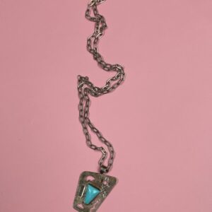 925 TURQUOISE STONE INLAY FUNKY PENDANT CHAIN NECKLACE SOUTHWEST INDIAN SYMBOLS *SIGNED