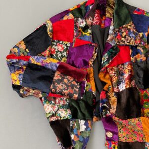 FUNKY VELOUR COLORFUL PATCHWORK CROPPED JACKET