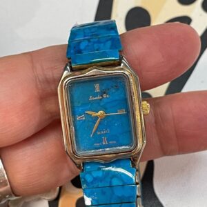 LADIES STRETCH BAND WATCH TURQUOISE INLAY RECTANGULAR FACE