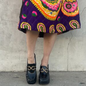 ADORABLE! PATENT LEATHER CHUNKY HEEL PLATFORM OXFORDS BAMBOO CHAIN DETAIL