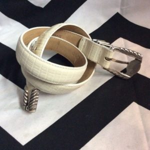 BELT – EMBOSSED SNAKE SKIN DESIGN – WESTERN STYLE TIP & BUCKLE W/OVAL DECORATION