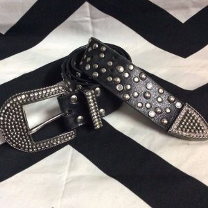 BELT – LEATHER – HEAVILY STUDDED W/RHINESTONES – SILVER BUCKLE & END TIP