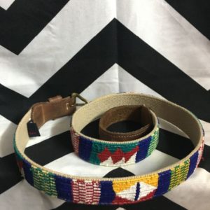 BELT W/ MULTI-COLOR WOVEN RECTANGLE PATTERN & GOLD BUCKLE