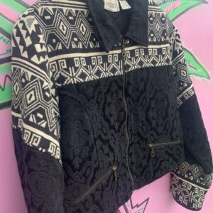 CUTE! PATCHWORK QUILTED TEXTILE CROPPED ZIP UP JACKET