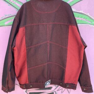 1990S | EARLY Y2K IRIDESCENT OVERDYED RED DENIM JACKET FUNKY ANGLED POCKETS