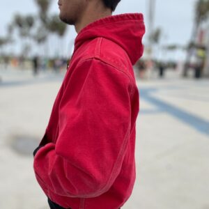 PERFECTLY TATTERED & FADED RED CARHARTT ZIP UP WORKWEAR JACKET