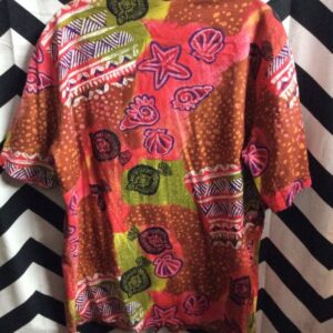 COLLAR HAWAIIAN SHIRT FRONT TIE LARGE WHITE BUTTONS PARADISE PRINT