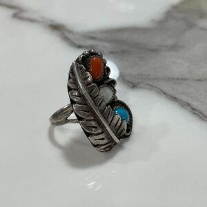 ORNATE LEAF DESIGN RING 3 STONES (TURQUOISE, MOP, CORAL)