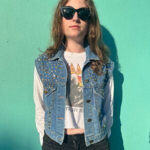 RAD! 1980S RHINESTONE STUDDED BUTTON UP SLEEVELESS CROPPED DENIM VEST