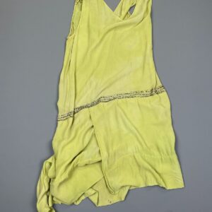 *AS-IS* 1920S CHARTREUSE 100% SILK FLAPPER DRESS RHINESTONES EMBELLISHMENTS