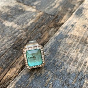 WATCH RING SQUARE FACE LARGE BLUE JEWEL FACE