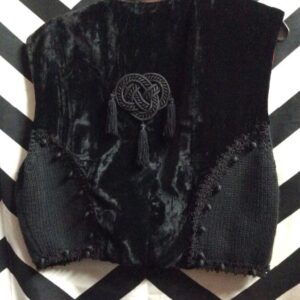 VELVET & KNIT VEST SATIN LINING W/KNOT & TASSELS