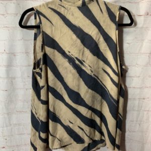 SILK SLEEVELESS ZEBRA STRIPED BLOUSE W/ TIE COLLAR