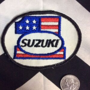 EMBROIDERED PATCH – SUZUKI – #1 W/AMERICAN FLAG DESIGN – OVAL SHAPE